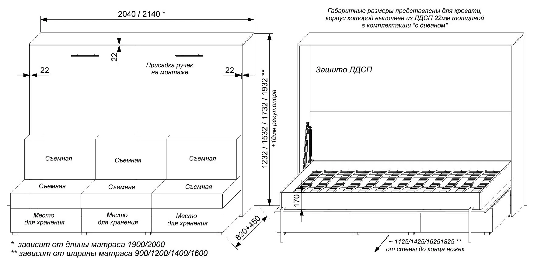 Матрас для шкаф-кровати "Memory"